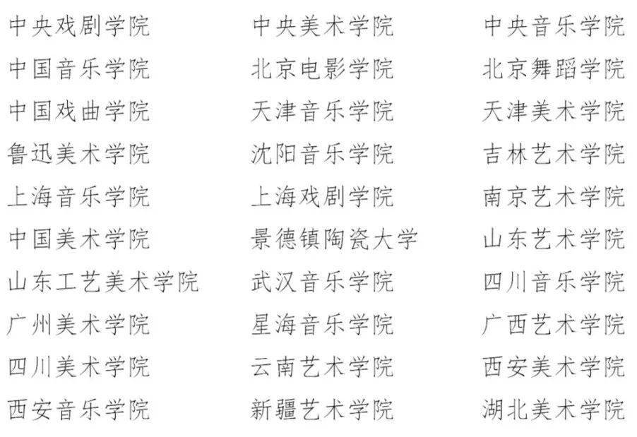 教育部批准独立设置的本科艺术院校(含参照院校),俗称“30+18”院校,代表了各艺术领域的最高实力。